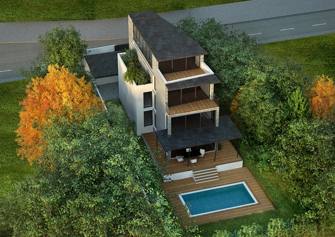 Maison d'habitation contemportaine avec piscine