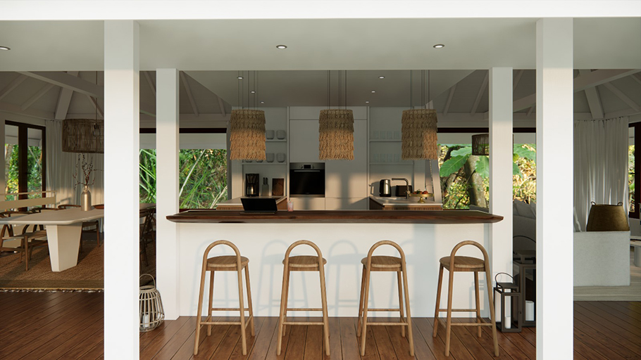 Construction d'un hôtel écologique en bungalows sur pilotis
